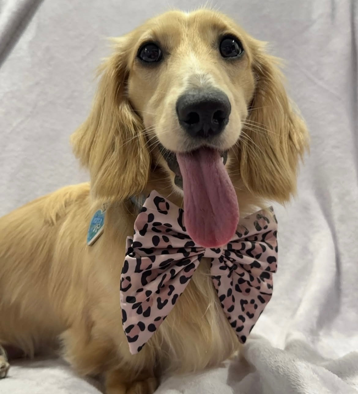Add a touch of wild elegance to your pup’s look with our Savannah Style Bow. Designed in our signature leopard print, this bow is the perfect finishing touch for stylish pooches who love to stand out.
